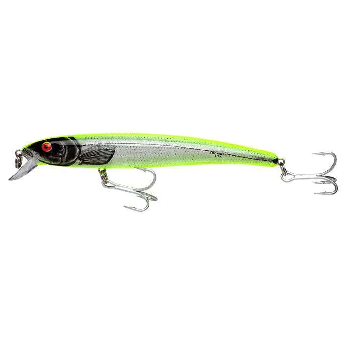The Bomber Long A fishing lure is the legendary Long A on steroids. This bad-to-the-bone 7 in saltwater minnow exhibits the same true-running death wiggle as its predecessor but is built for severe impact and heavy lifting. When cranked, it runs at 2 to 3 ft and will put the pounding on everything from snapper to giant stripers. New Saltwater Grade hardware and a super-high-tensile strength polycarbonate body round out this proven fish catching package to the next power.