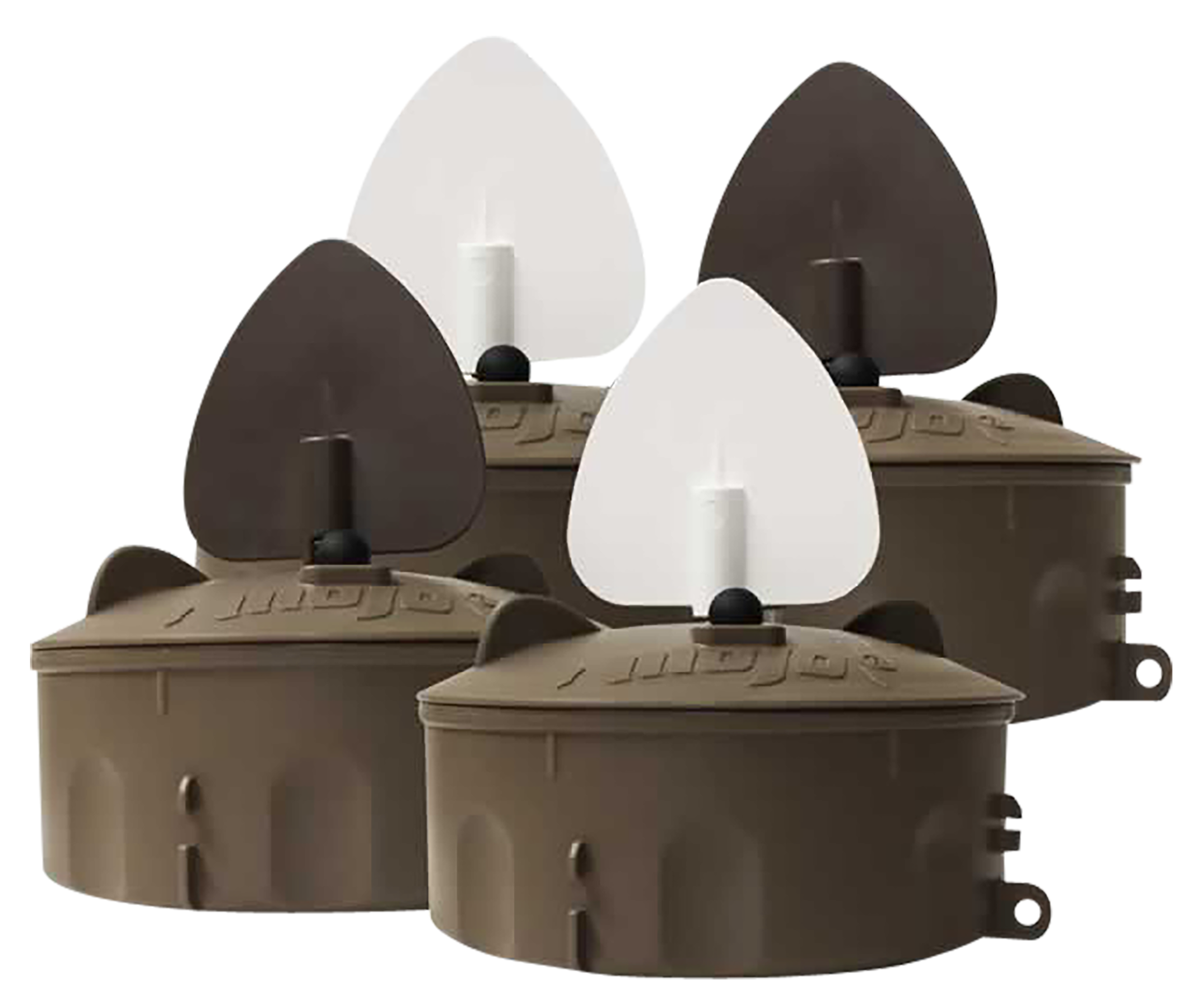 The MOJO Flock A Flicker 2 4-Pack brings a new level of realism to your waterfowl spread. Building on the success of the original, these decoys mimic the random flashes of light and motion created by resting ducks on water or dry ground—signals that tell incoming birds it’s safe to land. The improved design features a larger housing with a sloped top, a re-engineered motor shaft seal, and a twist-lock lid with a heavy-duty gasket for reliable performance. Each unit is pre-programmed with intermittent on/off timers for a natural, random flicker effect. The magnetic wings have white and brown sides to create the perfect “flash,” and the soft-touch on/off button is easy to operate even with gloves. Designed for use on water or in dry fields, these decoys operate up to 30 hours on three AA batteries.