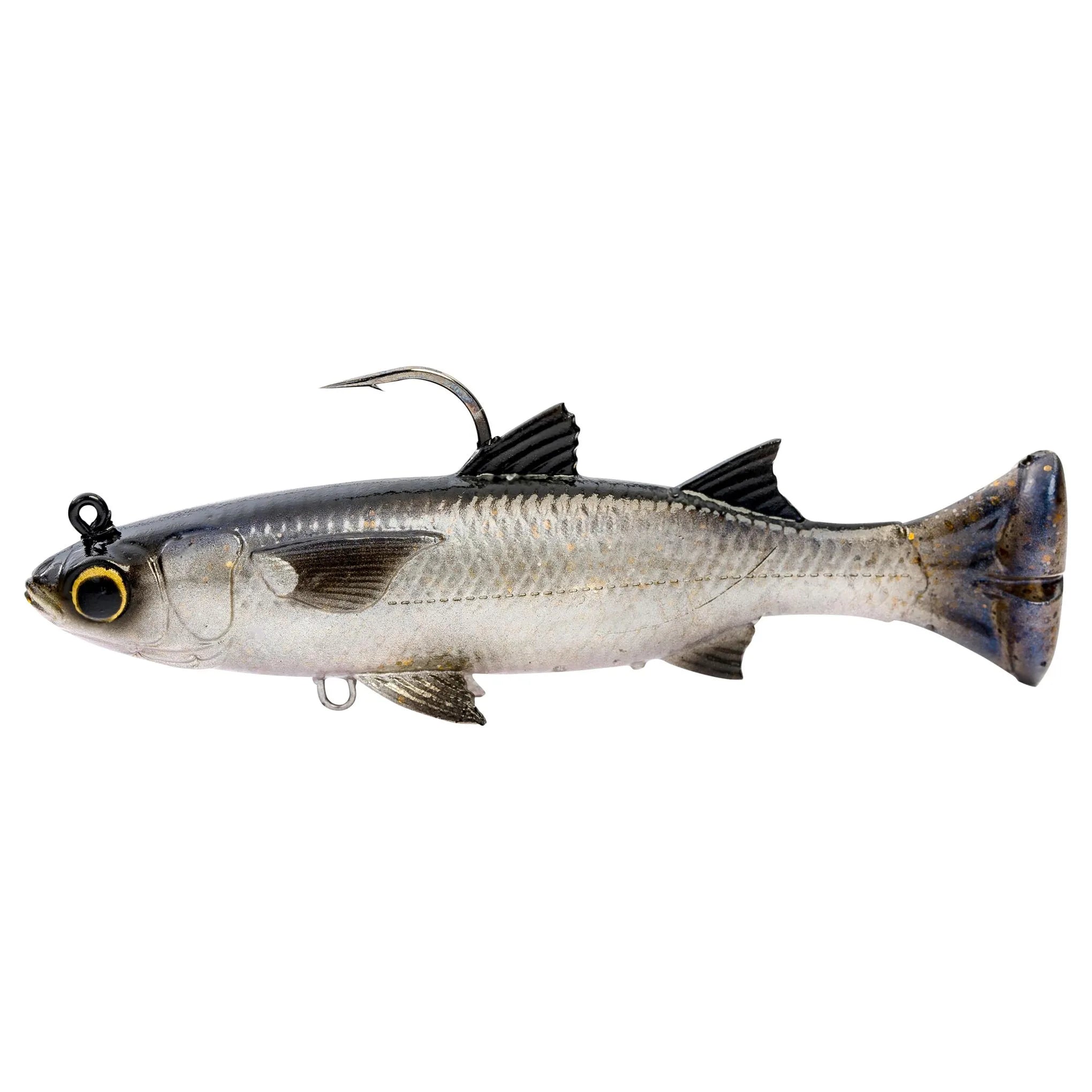 Based off the 3D scan of a real mullet. This innovative swimbait looks and swims like the real thing which makes it an excellent tool for anglers hunting big fish in pressured waters. From Snook to Redfish, Tarpon to speckled trout, many predators rely on some blend of vision and smell to locate prey; but across the board, vibration and water displacement play a significant role in forage location. Savage Gear capitalizes on these predatory instincts with the new family of Pulse Tail soft plastic baits. For each of these models, the split rear fin design creates a realistic pulse swimming action that mimics the surge of a fleeing forage fish.
