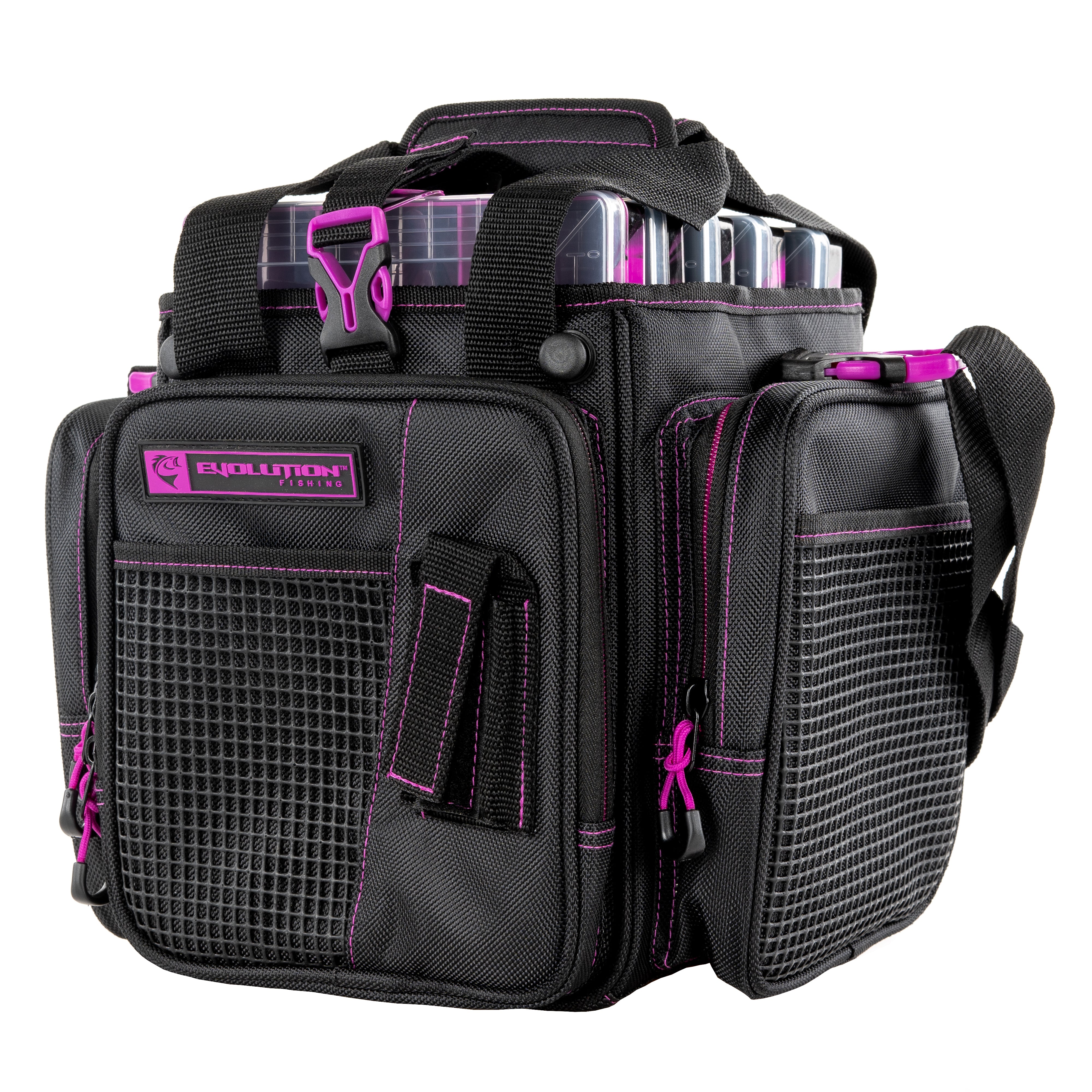 With its open top feature and extremely rugged wear-resistant 1680D construction, the Drift Series Topless Vertical Tackle Bags deliver the quality and functionality that Evolution Fishing is known for. These Drift Series Tackle Bags have an innovative large mouth, open top feature that provides quick and easy access to all your trays. Slide your trays in vertically with this version of the tackle bag. The integrated tie down Y-Strap will secure your trays in the bag, and in case of stormy weather, these bags are equipped with an integrated rain fly that you can zip up and store away when not in use. With 3 large exterior storage pockets and 4 rubber mesh slip pockets, you’ll have plenty of room to store all your accessories. It’s also equipped with a plier holster, side pocket line spool feed, and a non-slip, waterproof bottom with integrated drainage grommets. Transporting these tackle bags will be a breeze with the adjustable, removable shoulder strap and the padded top carry handle. With the capacity to hold up to 5 tackle trays, it’s more than capable of holding all your fishing essentials. Each tackle bag will include 5 matching color Drift Series Tackle Trays.